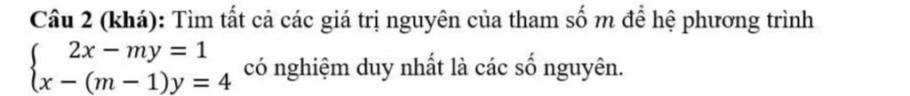 Vậy các số nguyên là $m \in \{3; 1; 9; -5\}$ thì hệ có no duy nhất là các số nguyên