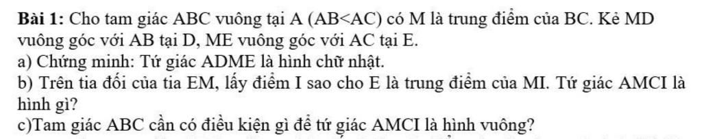 b) Do AM là đường trung tuyến của ΔABC vuông tại A
