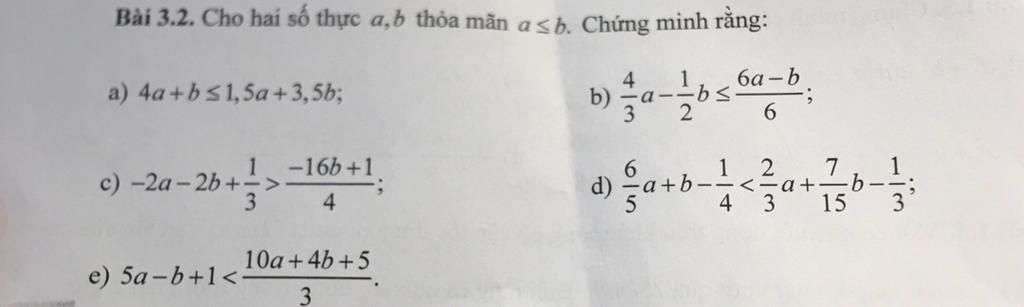`-` c) Có: $ -2a - 2b + \frac{1}{3} > \frac{-16b + 1}{4}$
