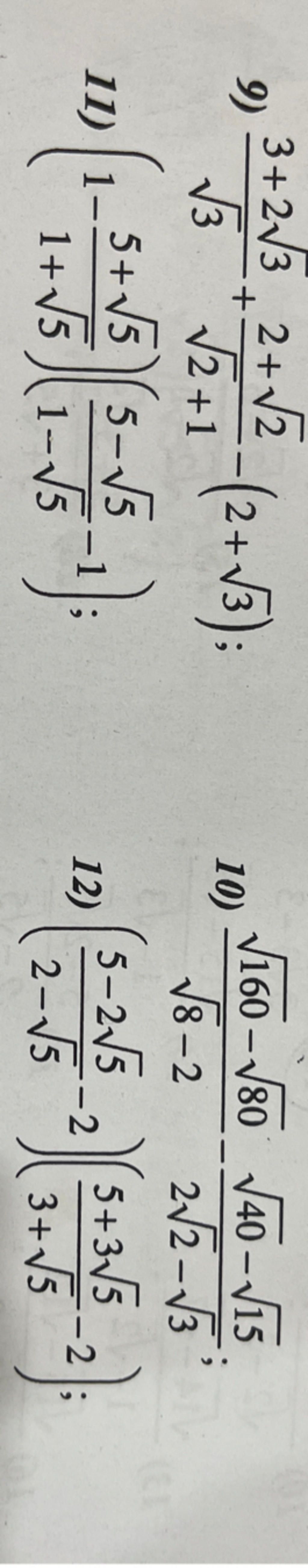 `12. ((5-2sqrt5)/(2-sqrt5)-2) ((5+3sqrt5)/(3+sqrt5-2)`