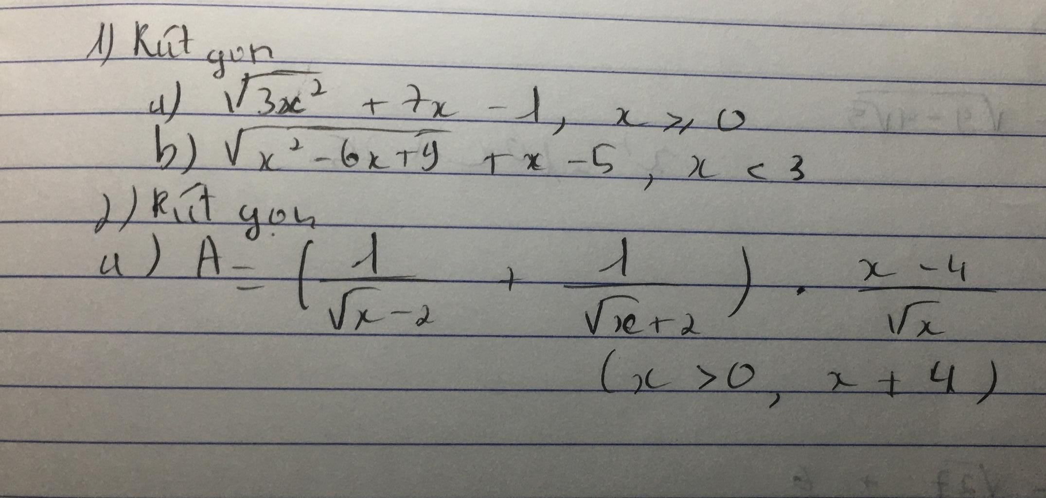 $\to A=\dfrac{\sqrt{x}+2+\sqrt{x}-2}{(\sqrt{x}+2)(\sqrt{x}-2)}\cdot\dfrac{(\sqrt{x}+2)(\sqrt{x}-2)}{\sqrt{x}}$