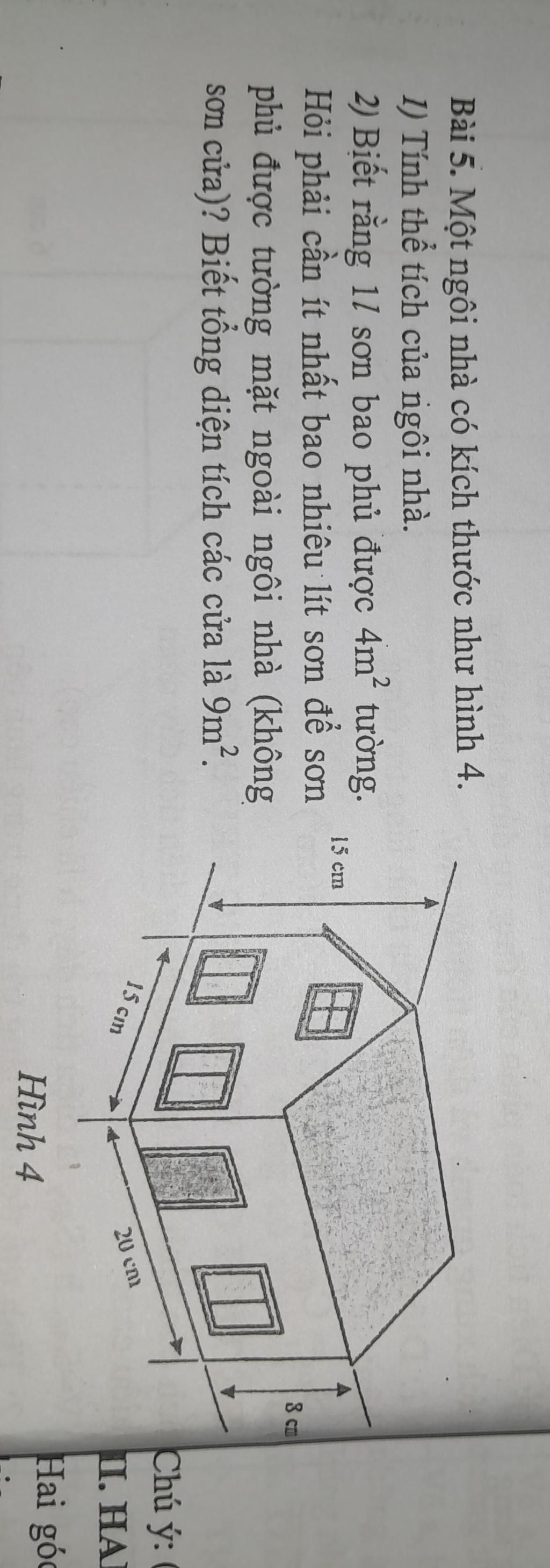 `2,` Diện tích xung quanh của ngôi nhà là: