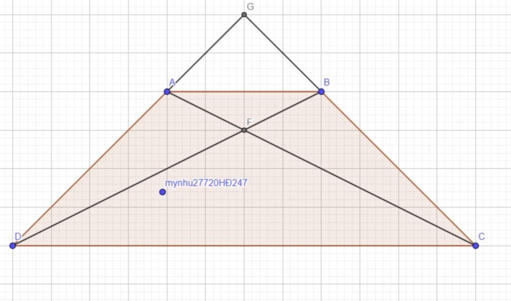Cho hình thang cân ABCD, AB //CD, AB <CD. Gọi G là giao điểm AB và BC, F là giao điểm của AC và BD. Chứng minh