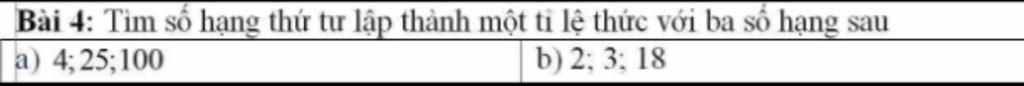 Ta có tỉ lệ thức: `4/25 = 100/x`