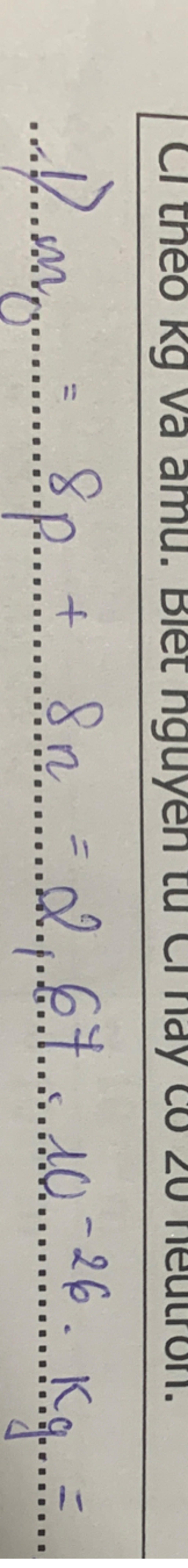 `=>m_O=8p+8n=8.1,673.10^{-27}+8.1,675.10^{-27}=2,6784.10^{-26}(kg)~~2,67.10^{-26}(kg)`
