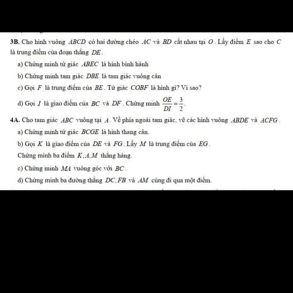 3B. Cho hình vuông ABCD có hai đường chéo AC và BD cắt nhau tại O . Lấy điểm E sao cho C