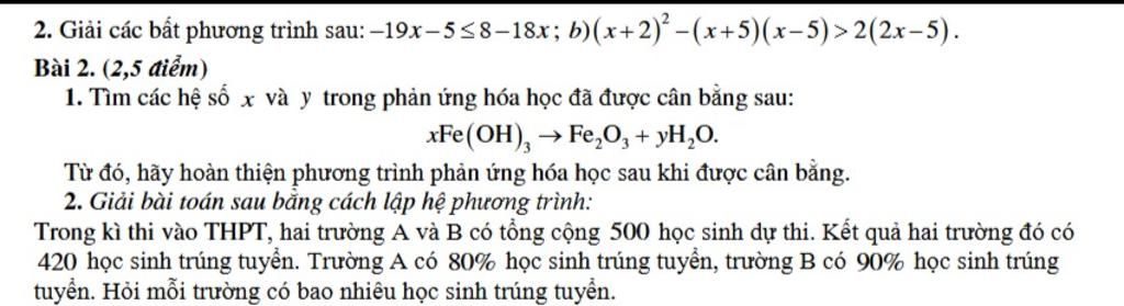 Vậy trường `A` có `240` học sinh trúng tuyển, trường `B` có `180` học sinh trúng tuyển.