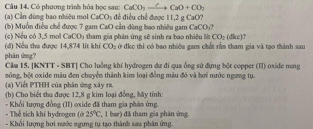 Câu 14. Có phương trình hóa học sau: CaCO3 → ) CaO+CO2