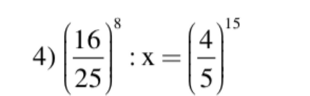 ` x = ( 4/5 )^16 : ( 4/5 )^15 `