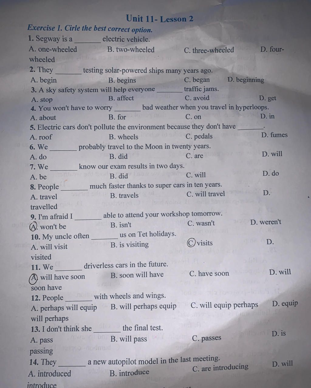 7.C- câu này cũng là dự đoán trong tương lai nên chọn will