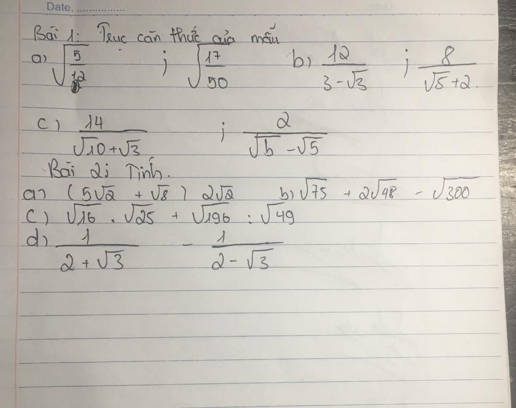 Xem lại phần `\frac{2}{\sqrt{b}-\sqrt{5}}`