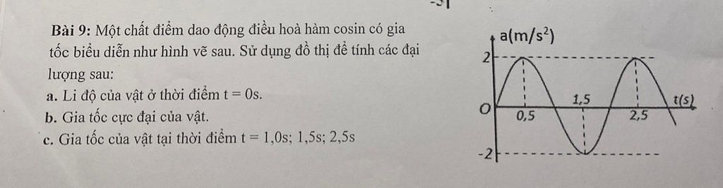 `+)` Nhìn đồ thị thấy gia tốc cực đại của vật là `a=2m`/`s^2`