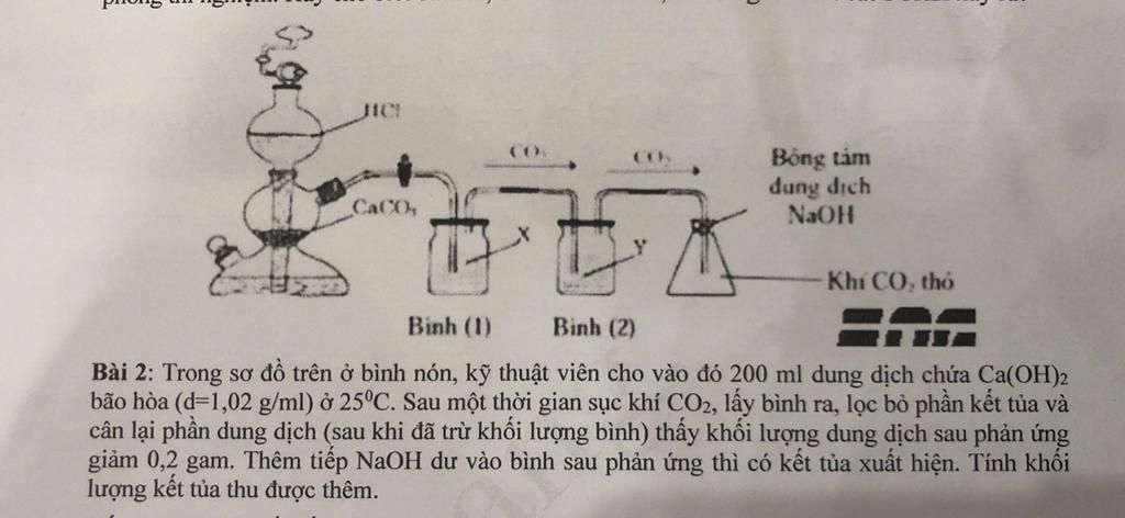 Bài 2: Trong sơ đồ trên ở bình nón, kỹ thuật viên cho vào đó 200 ml dung dịch chứa Ca(OH)2