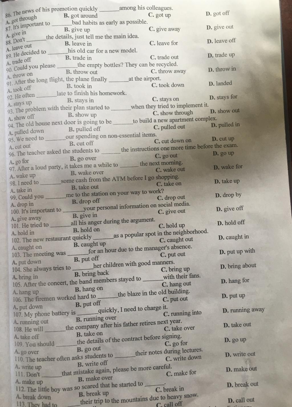 112.Đáp án: D. break out
