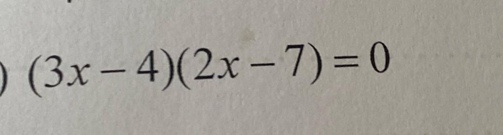 `(3x - 4)(2x - 7) = 0`