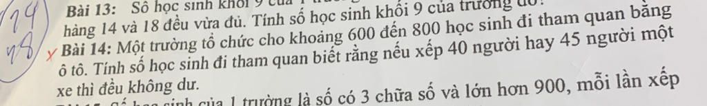 Gọi số học sinh là `x ( x ∈ NN , 600 < x < 800 )`