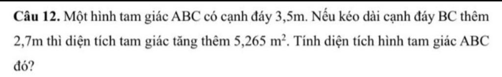 Diện tích tam giác `ABC` là :