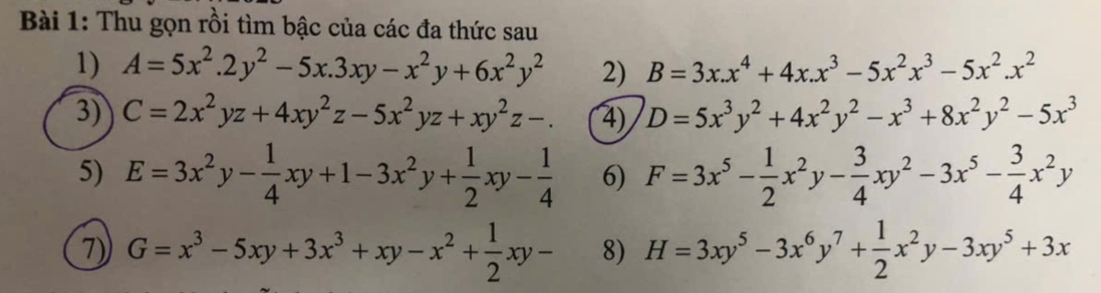 $G=x^3-5xy+3x^3+xy-x^2+\dfrac12xy$