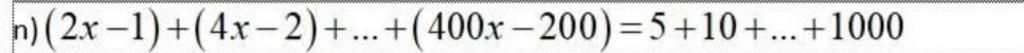 `(2x-1)+(4x-2)+...+(400x-200)=5+10+...+1000`