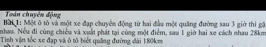 Vậy Vận tốc của xe đạp là `16 km//h` và ô tô là : `44 km//h`
