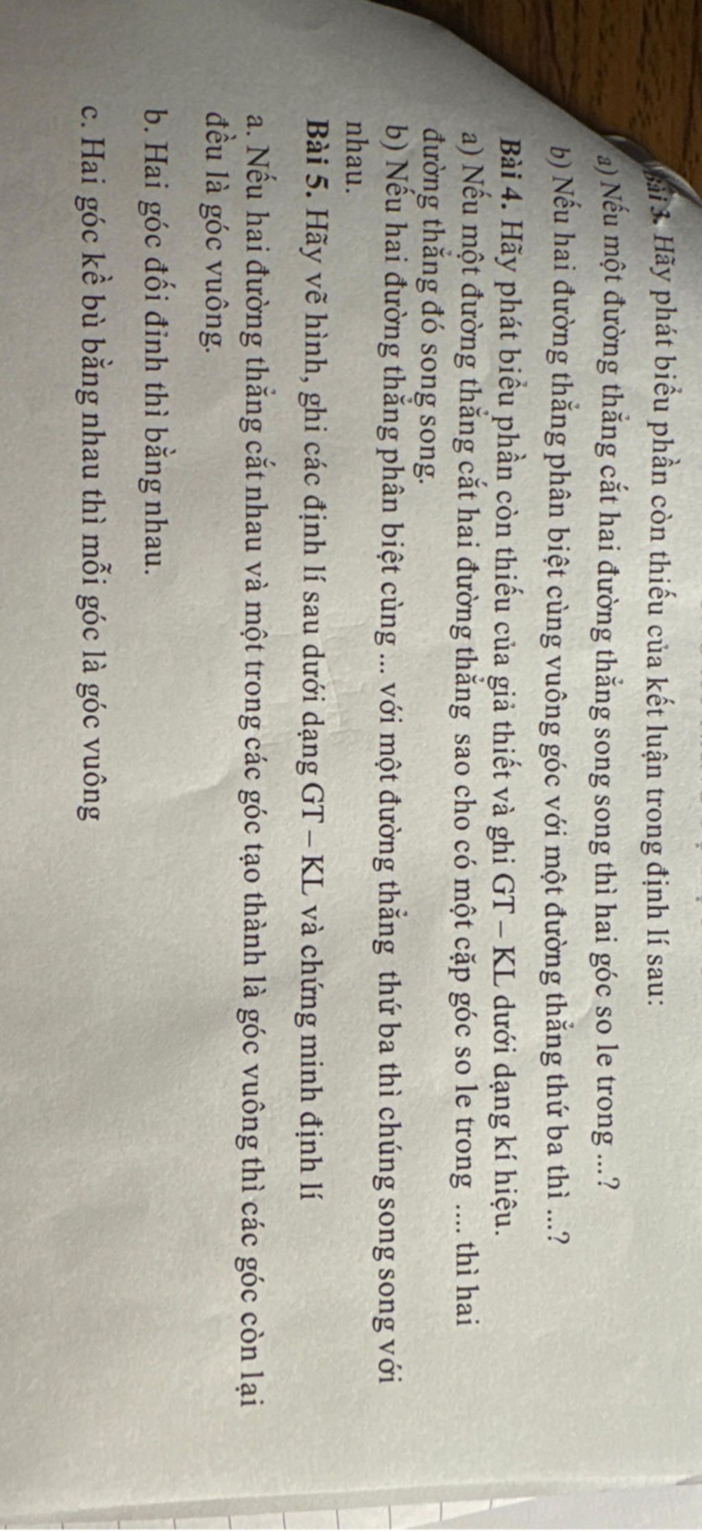 Bài 4. Hãy phát biểu phần còn thiếu của giả thiết và gh ...