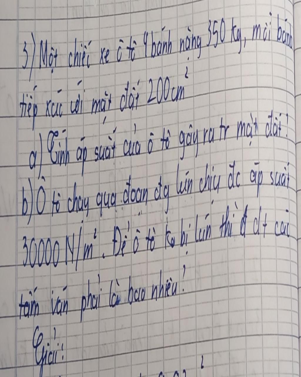 `+)` Diện tích tối thiểu của tấm ván để xe không bị lún là:
