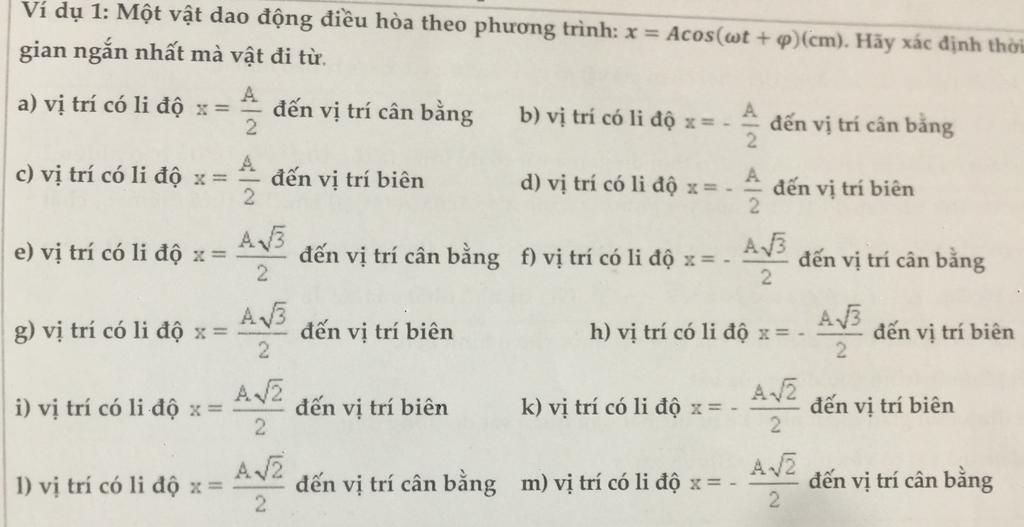 Ví dụ 1: Một vật dao động điều hòa theo phương trình: x = Acos(wt + p)(cm). Hãy xác định thời