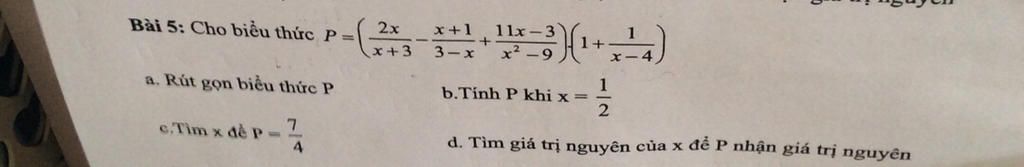 `d)` Để `P` nhận giá trị nguyên thì `(x-2)/(x-4)` phải là số nguyên