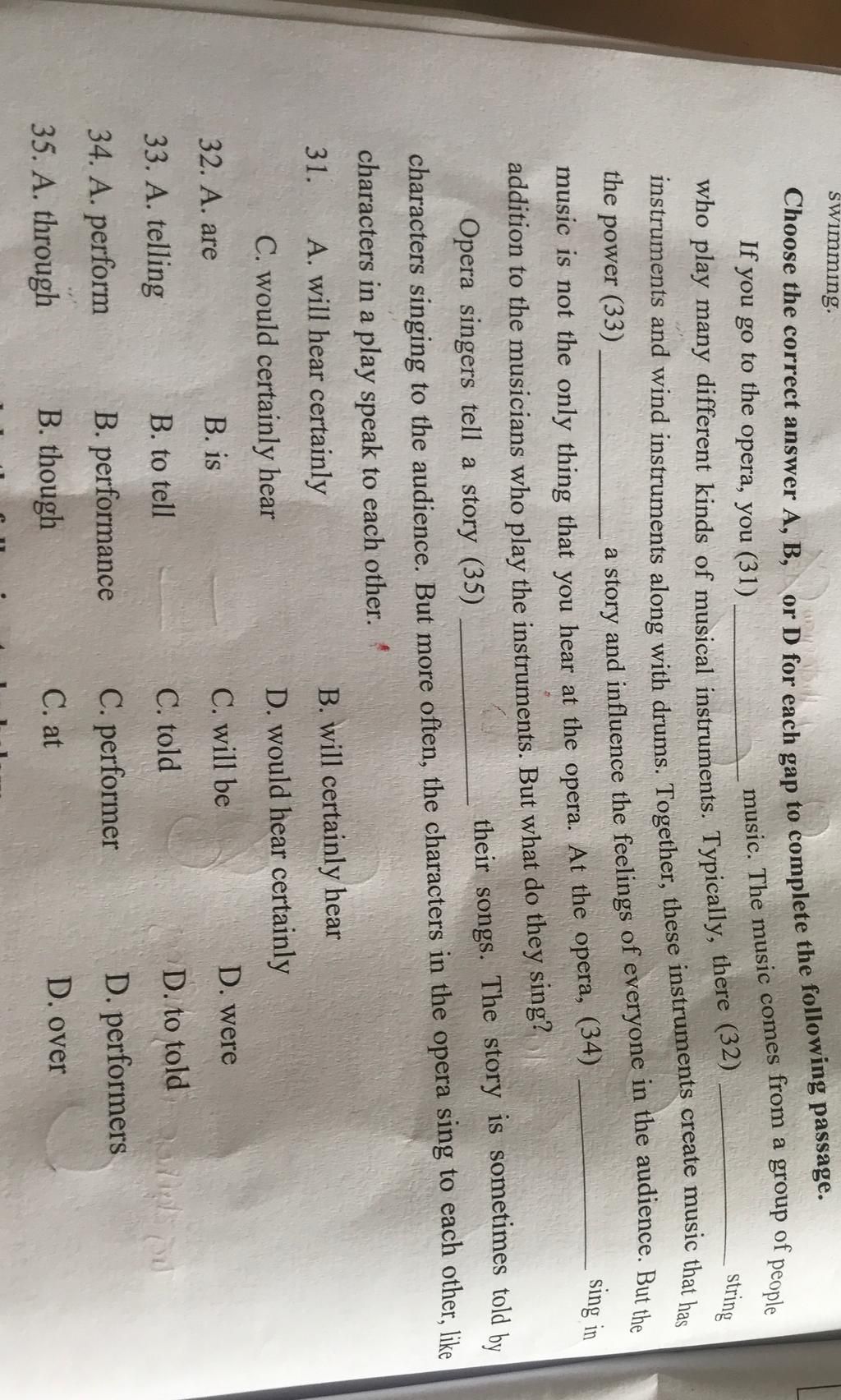 31. B (câu điều kiện loại 1: If+S+V, S+will+V; "certainly" là trạng từ nên cần đứng trước động từ)