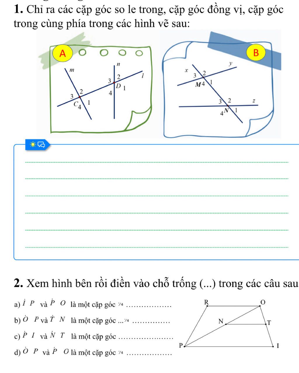 N2 và M2;N1 và M1;N3 và M3;N4 và M4.