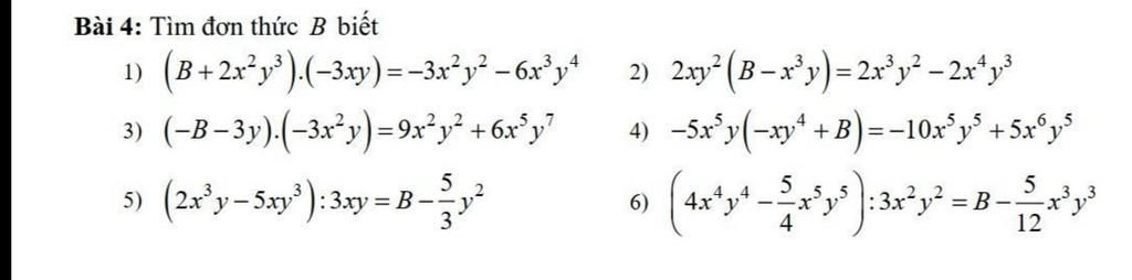 `1 .(B+2x^2y^3)(-3xy) =-3x^2y^2 - 6x^3y^4`