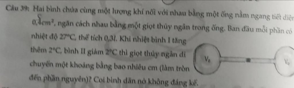 $\text{Giọt thủy ngân dịch chuyển một khoảng = 5 (cm)}$