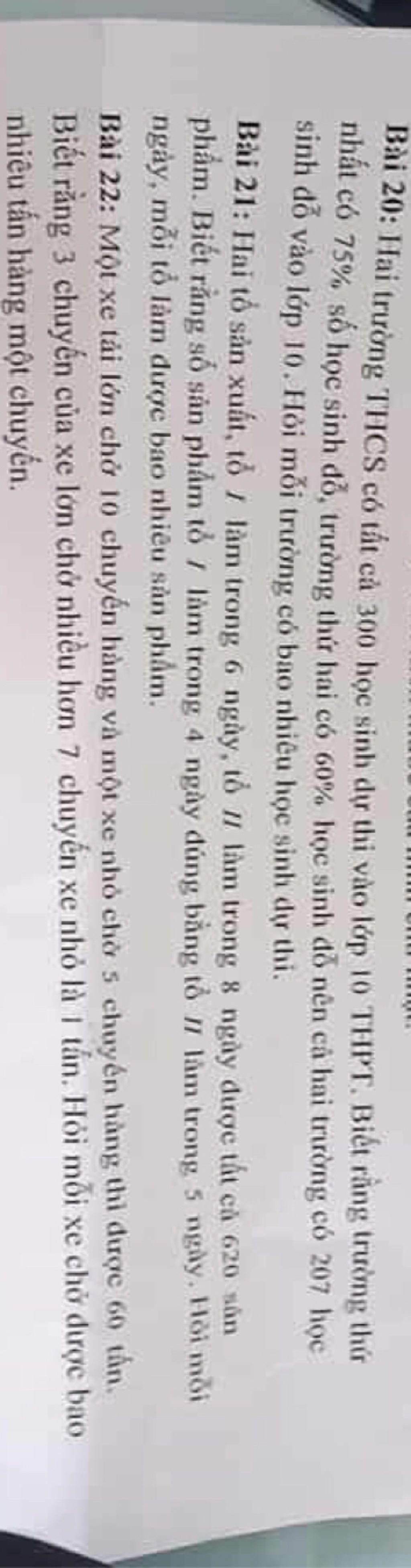 Bài 20: Hai trường THCS có tất cả 300 học sinh dự thi vào lớp 10 THPT. Biết rằng trường thứ