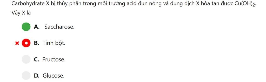 `->` Giải thích : Carbohydrate $\rm X$ nếu là saccharose khi bị thủy phân sẽ tạo thành glucose và fructose đều có phản ứng với $\rm Cu(OH)_2 $ và chính saccharose cũng có phản ứng