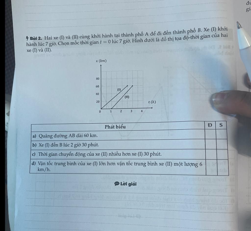 `->` Vận tốc của xe $(I)$ nhỏ hơn vận tốc của xe $(II)$ là `6` km/h