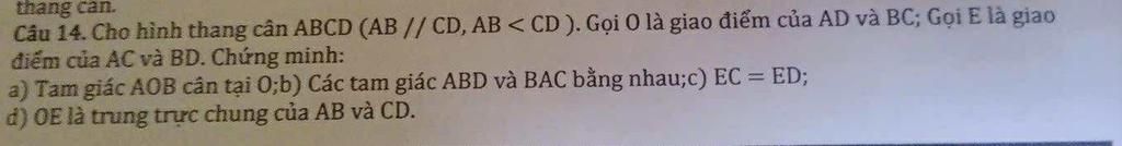 ABCD thang cân → AD=BC ; AC=BD ; ∠BAD=∠ABC