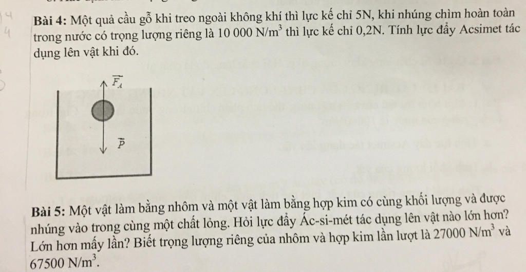`-` Lực đẩy tác dụng lên vật nhôm lớn hơn 2,5 lần so với hợp kim