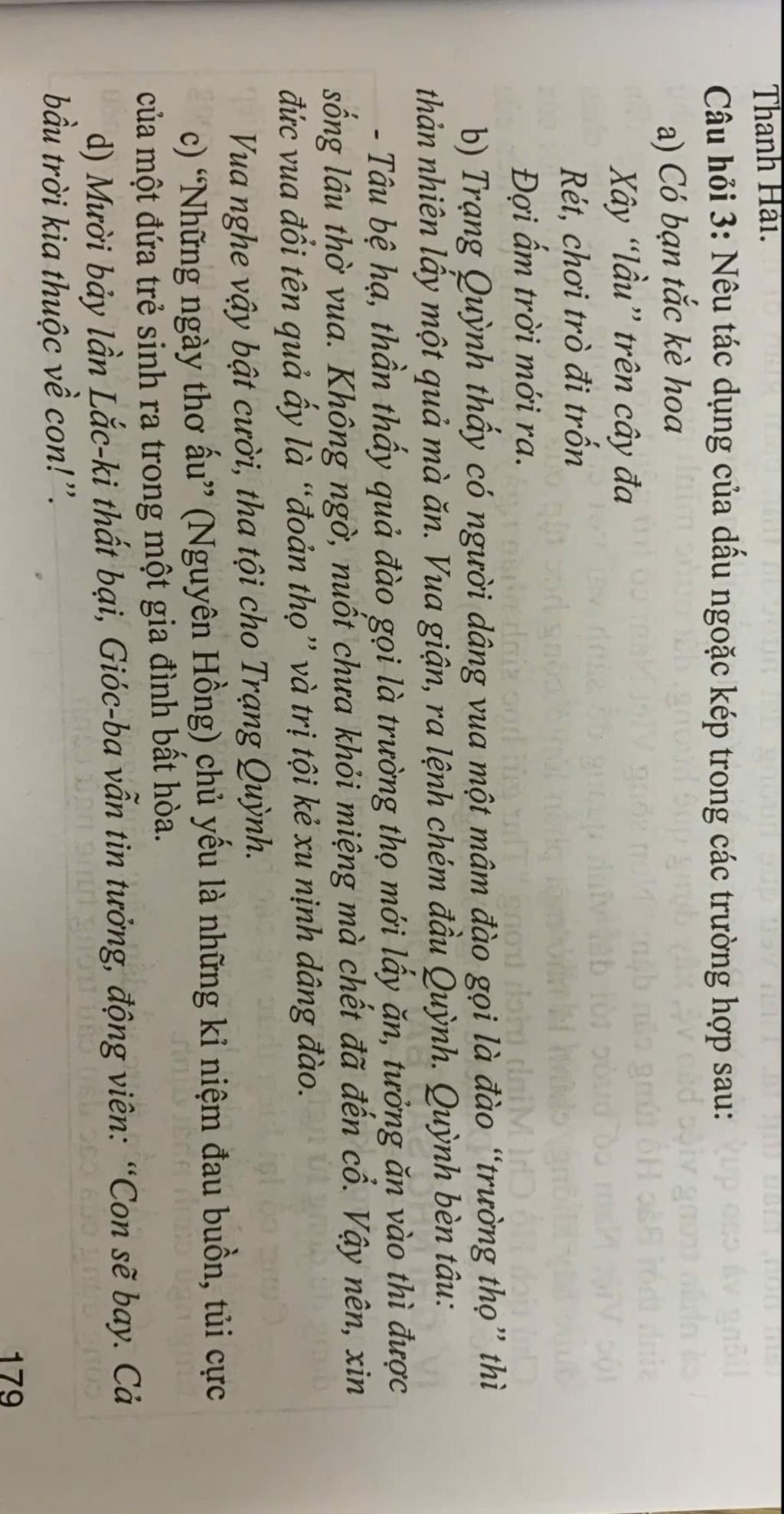 - Giải thích: Dấu ngoặc kép dùng để trích dẫn lời nói trực tiếp của một nhân vật, giúp người đọc biết chính xác ai đang nói và nói gì.