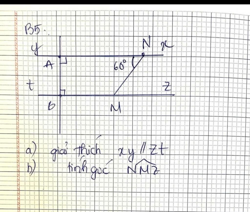 Mà góc yNM = 60 độ nên góc NMZ = 60 độ