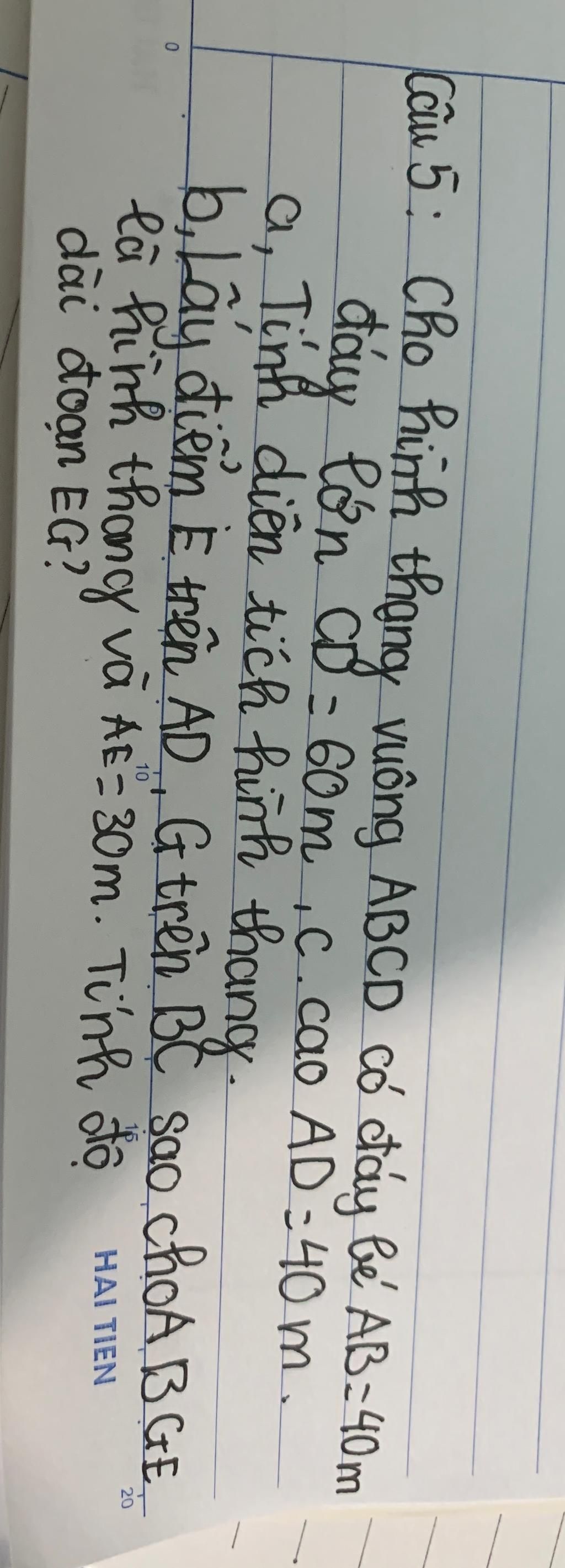 Câu 5: Cho hình thang vuông ABCD có đáy bé AB-40m