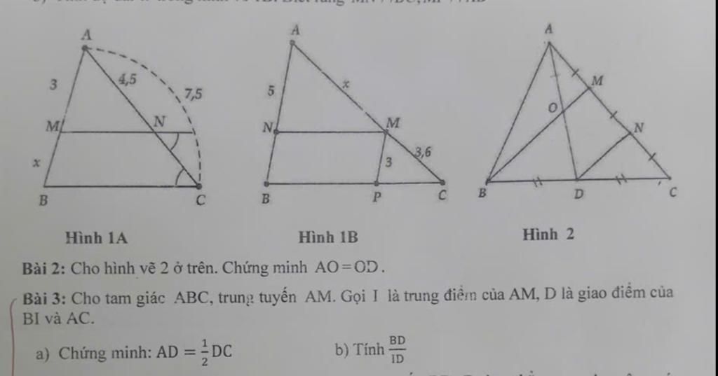 Bài 3: Cho tam giác ABC, trung tuyến AM. Gọi I là trung điểm của AM, D là giao điểm của