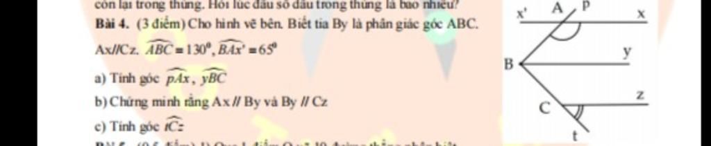 Bài 4. ( 3 điểm) Cho hình vẽ bên. Biết tia By là phân giác góc ABC.