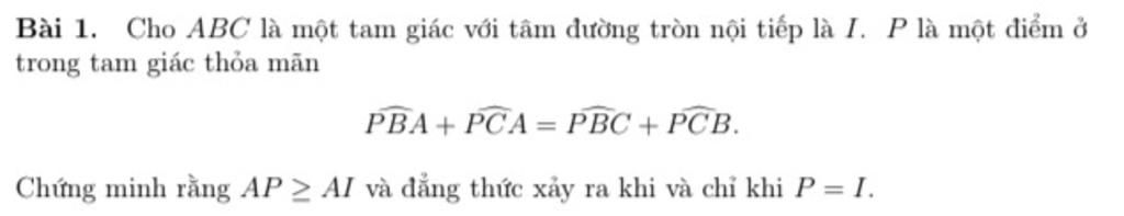 Bài 1. Cho ABC là một tam giác với tâm đường tròn nội tiếp là I. P là một điểm ở