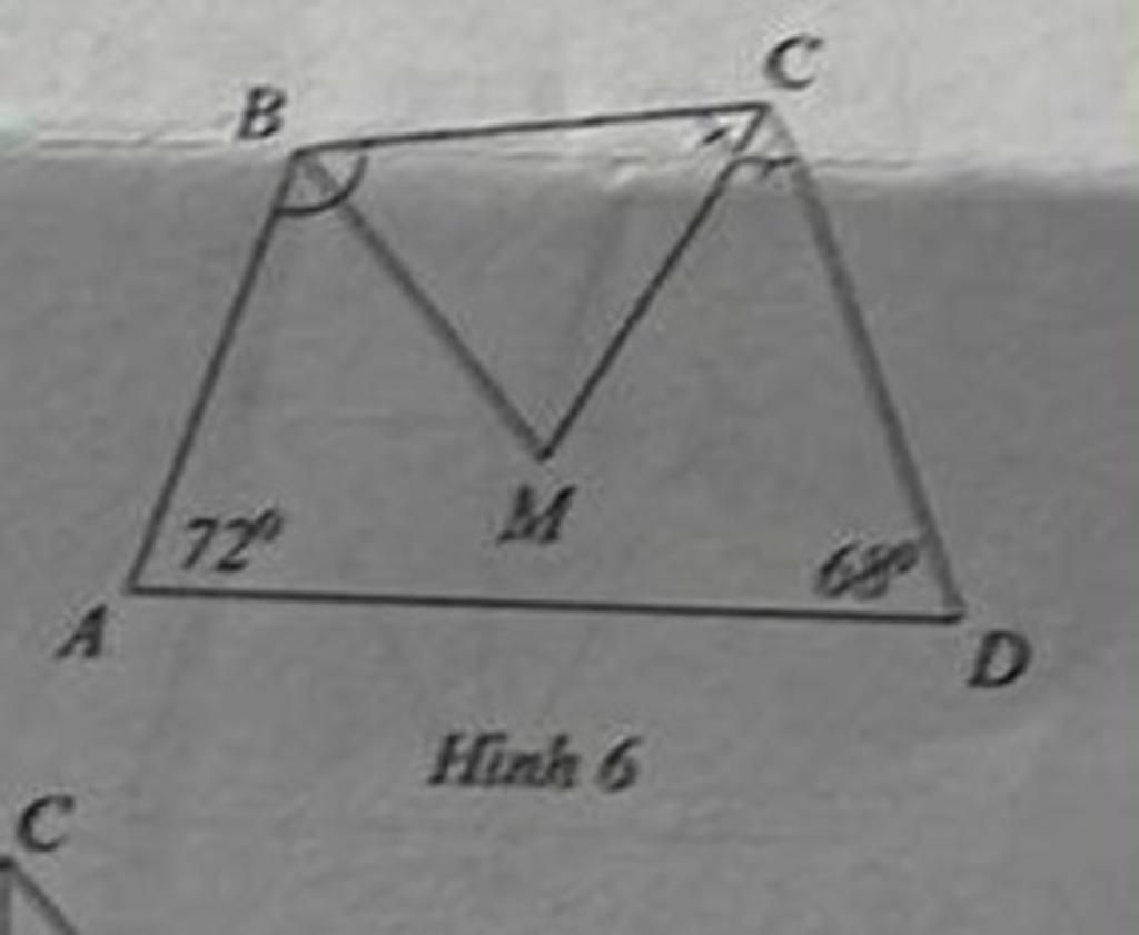 Cho tứ giác ABCD có góc A=72 độ,góc D=68 độ.Hai tia phân giác góc B,C cắt nhau tại M.Tính góc BMC