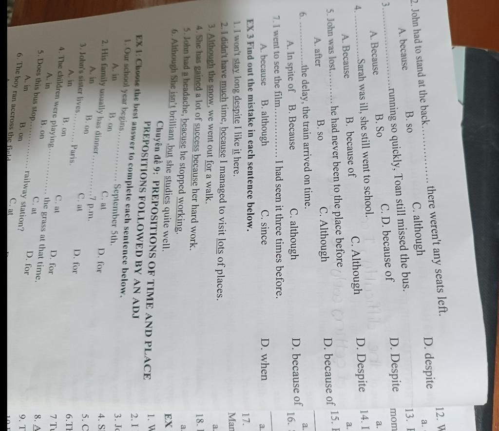 hay S + V + although/even though/though `+` S `+` V : mặc dù ... nhưng