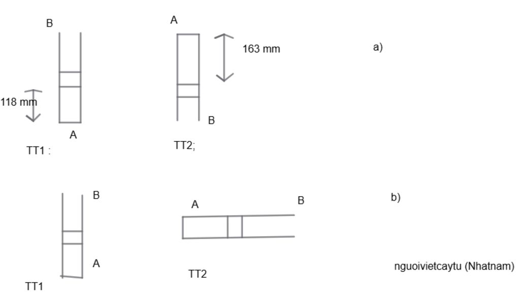Trong một ống thuỷ tinh AB, tiết diện S nhỏ , đầu A kín, đầu B hở có một cột thuỷ ngân cao h 121mm , đứng thẳng. Nếu ống đặt thẳng đứng, miệng ống hướng lên thì cột thuỷ ngân cách đầu A một khoảng 118 mm, khi ống đặt thẳng đứng, miệng ống ở dưới thì cột thuỷ ngân cách đầu A 163 mm.