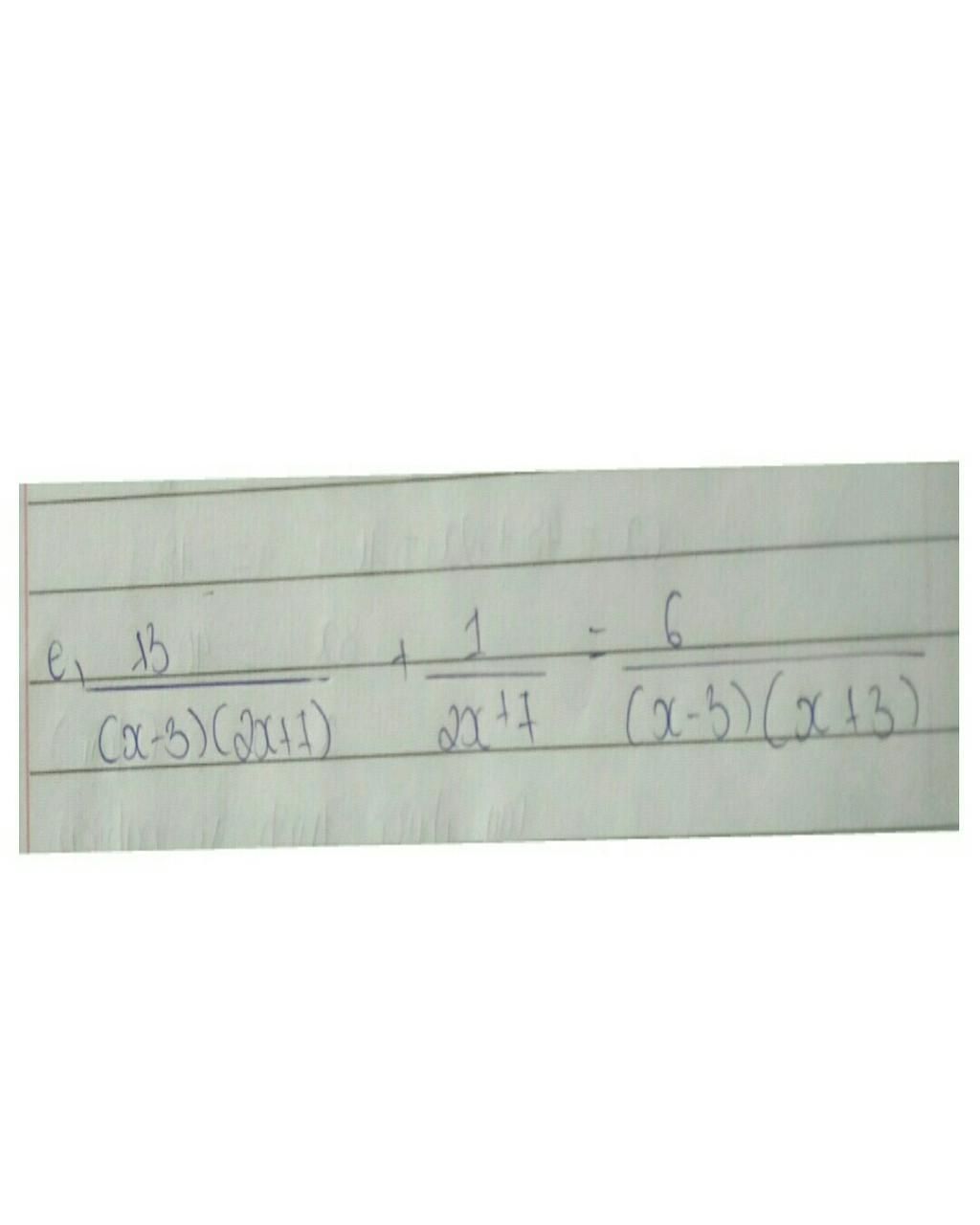 `e)13/((x-3)(2x+7)) +1/(2x+7) =6/((x-3)(x+3))(xne+-3;xne-7/2)`