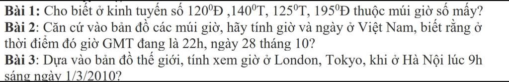 $\text{Hà Nội: GMT +7, London: GMT 0, Tokyo: GMT +9 }$