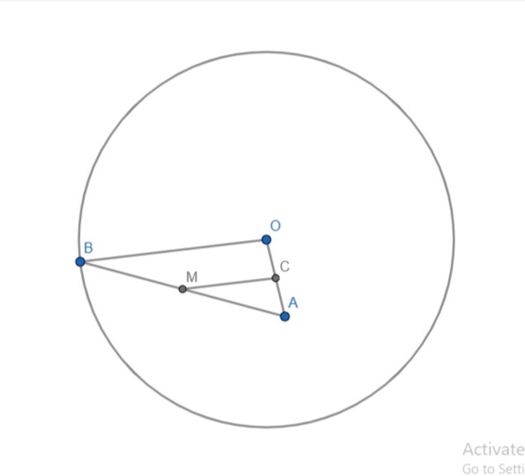 Cho điểm A cố định nằm trong (O, R) với A khác O. Gọi B là điểm bất kì thuộc (O). Chứng minh rằng: Trung điểm M của đoạn thẳng AB thuộc 1 đường tròn cố định.