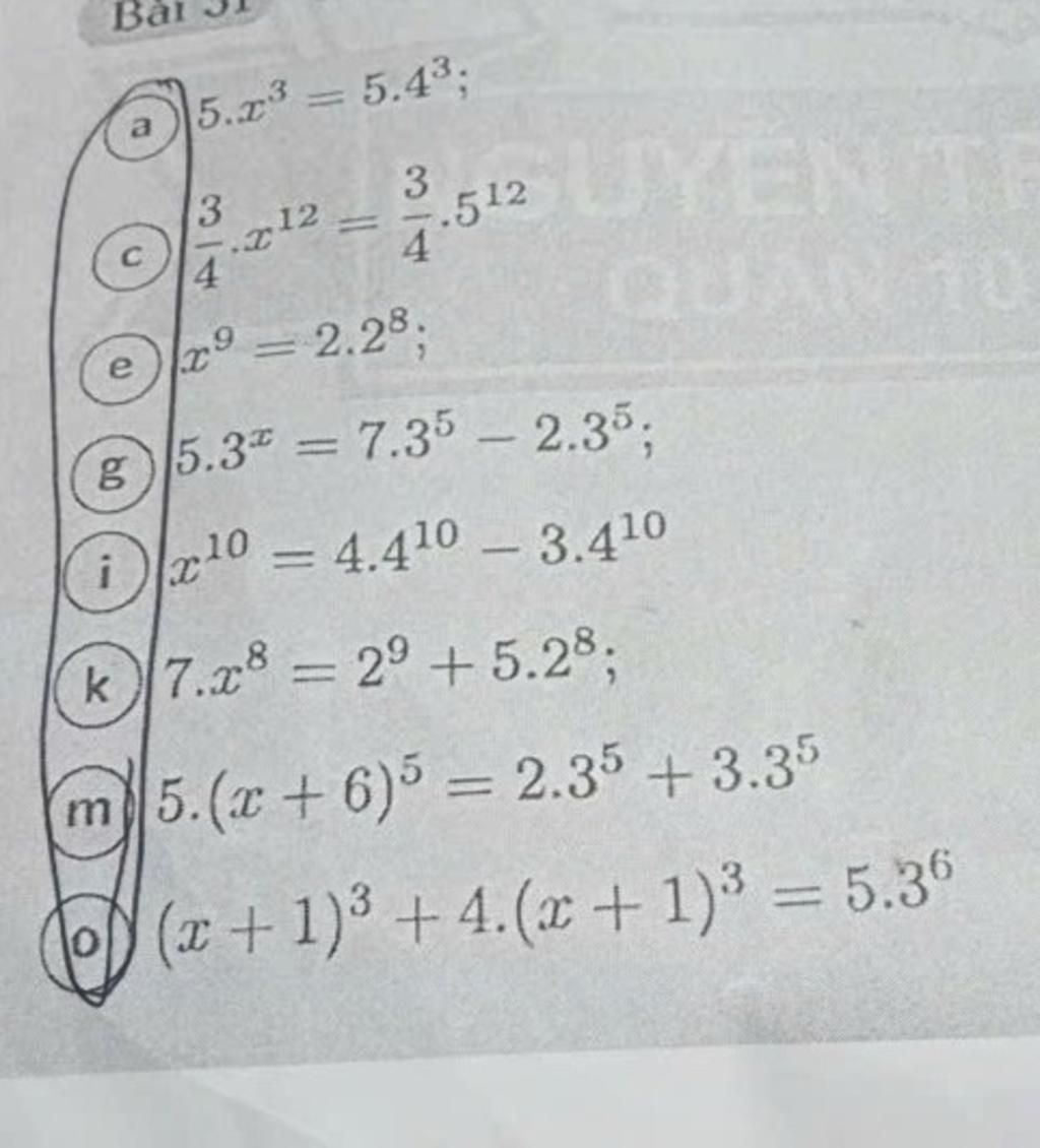`m) 5 . (x+6)^5 = 2 . 3^5 + 3 . 3^5`